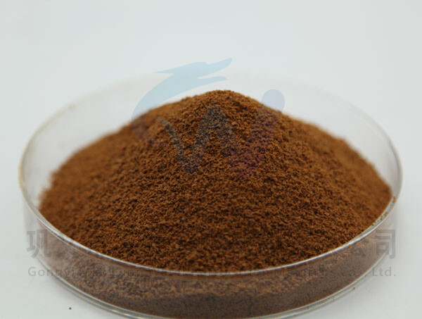 2、固态产品为棕褐色,红褐色粉末,易溶于水。